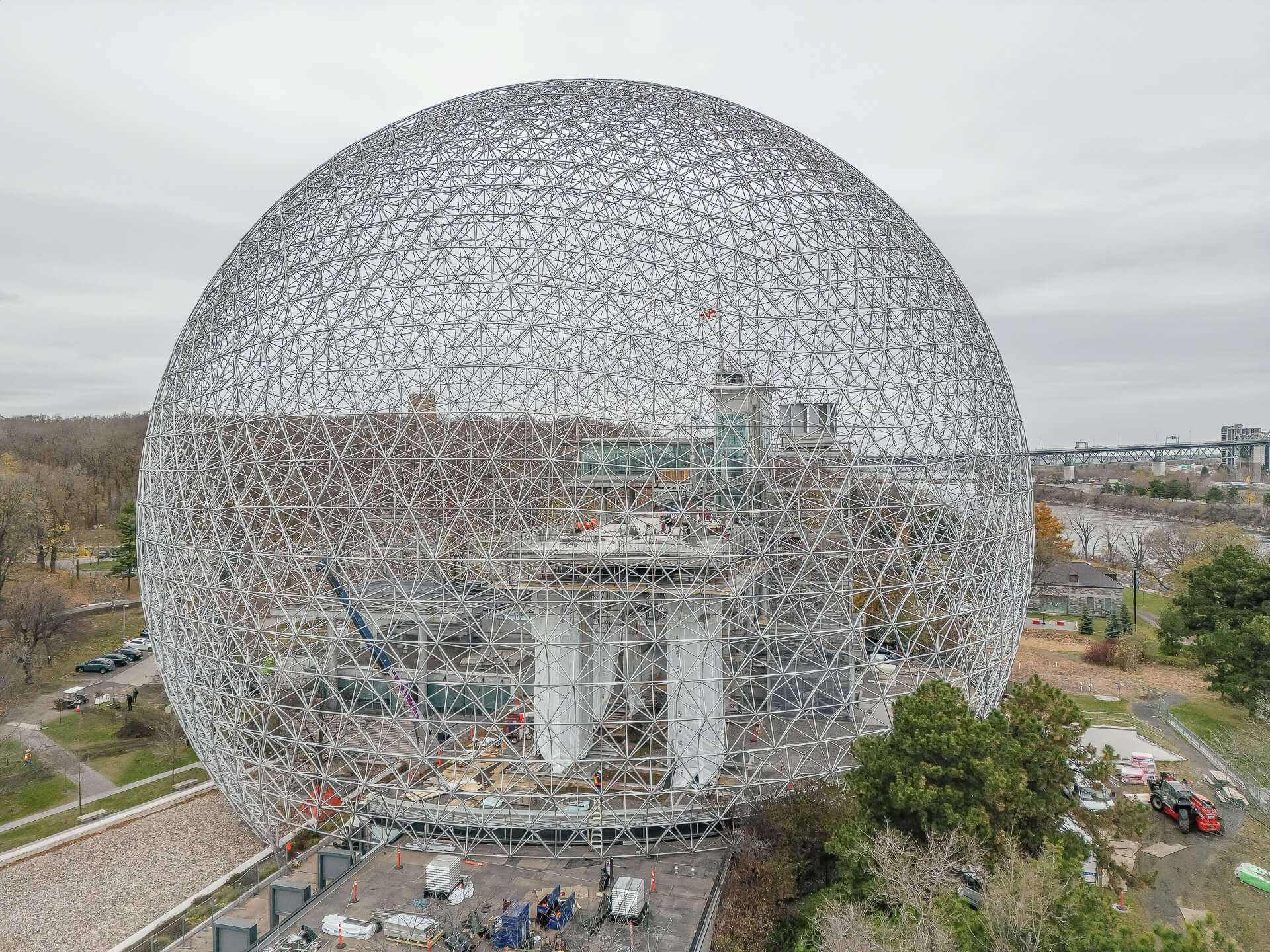 We designed and implemented a rosette scaffolding system adapted to the unique spherical structure of the biosphere. Modular and freestanding, this type of scaffolding allows precise access to work areas while ensuring stability and safety throughout the operations.